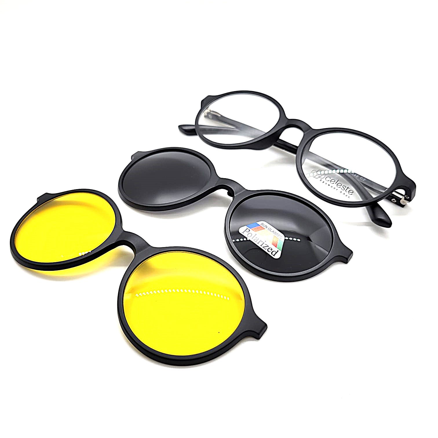 Dos clips magnéticos intercambiables: solar polarizado UV 400 y filtro amarillo antirreflejo para conducción nocturna.
