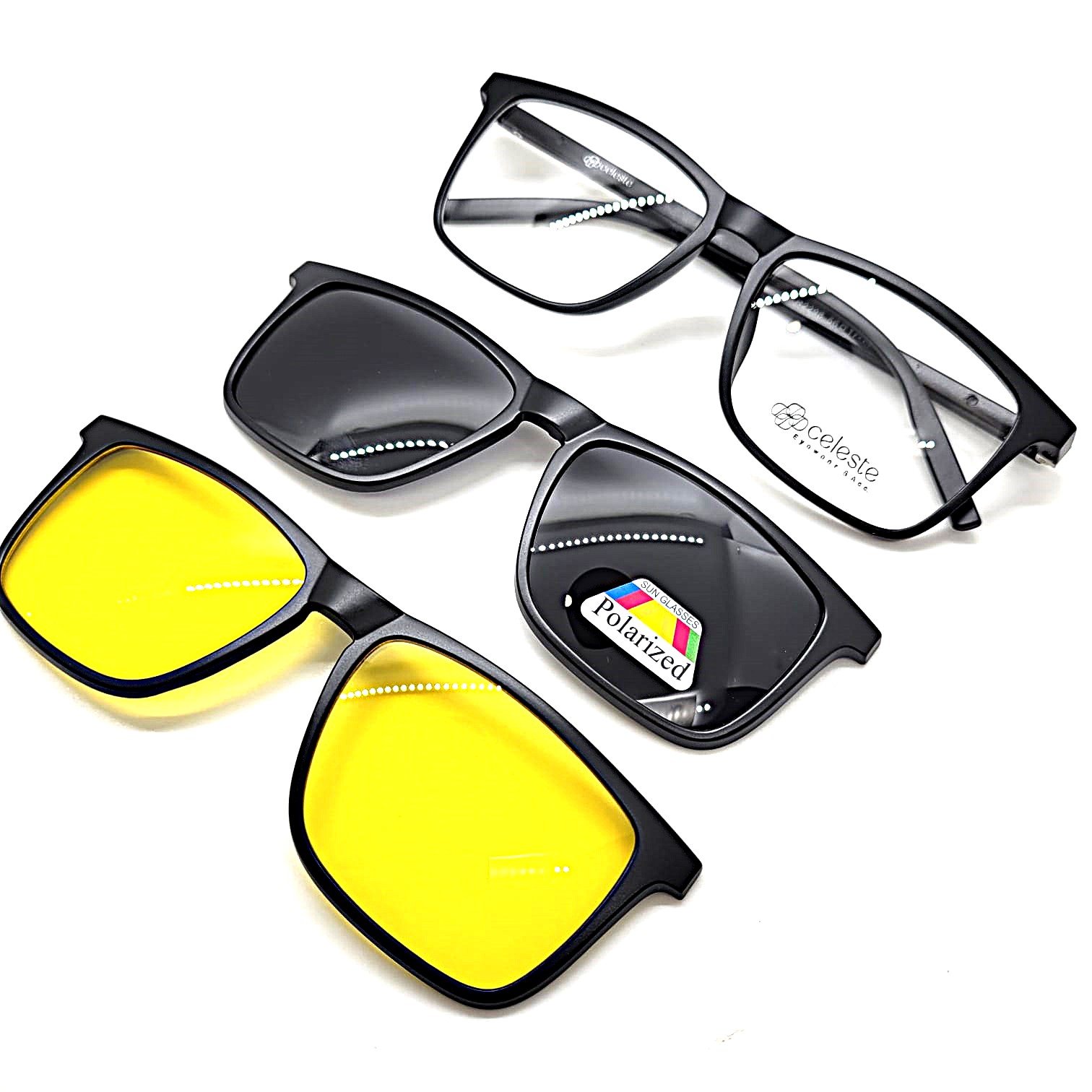 Diseño versátil y elegante en negro mate.Incluye 3 clips magnéticos intercambiables: solar polarizado, filtro nocturno y lente óptico.Una solución todo en uno para el uso diario.