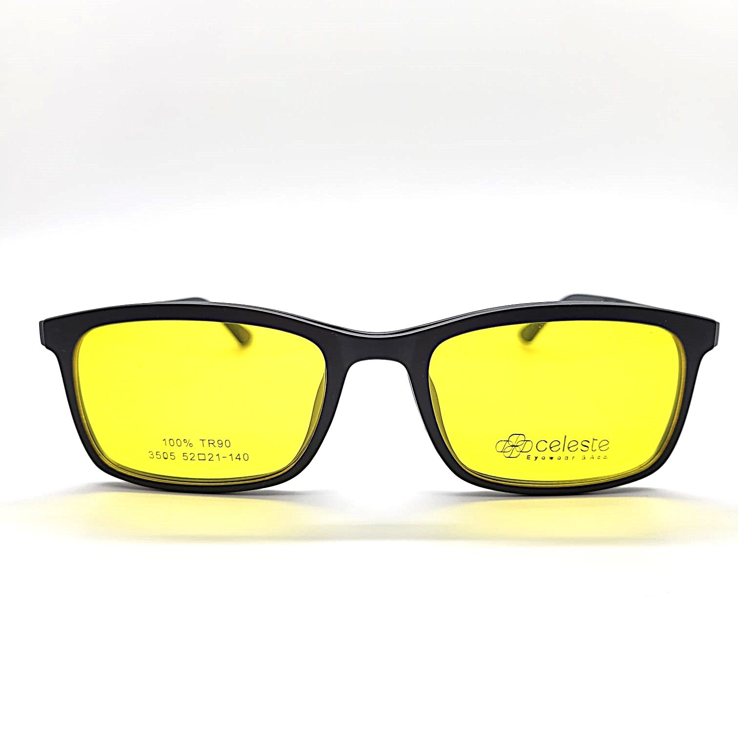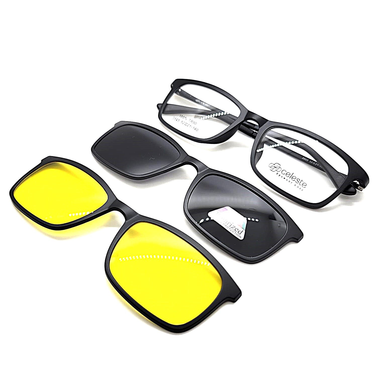 Dos clips magnéticos intercambiables: solar polarizado UV 400 y filtro amarillo antirreflejo para conducción nocturna.