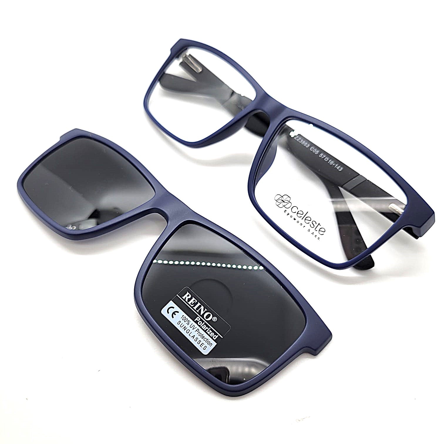 Diseño moderno con marco en azul mate y estilo deportivo.Incluye clip solar magnético con lentes polarizados y protección UV.Perfectos para quienes buscan practicidad sin resignar estilo.