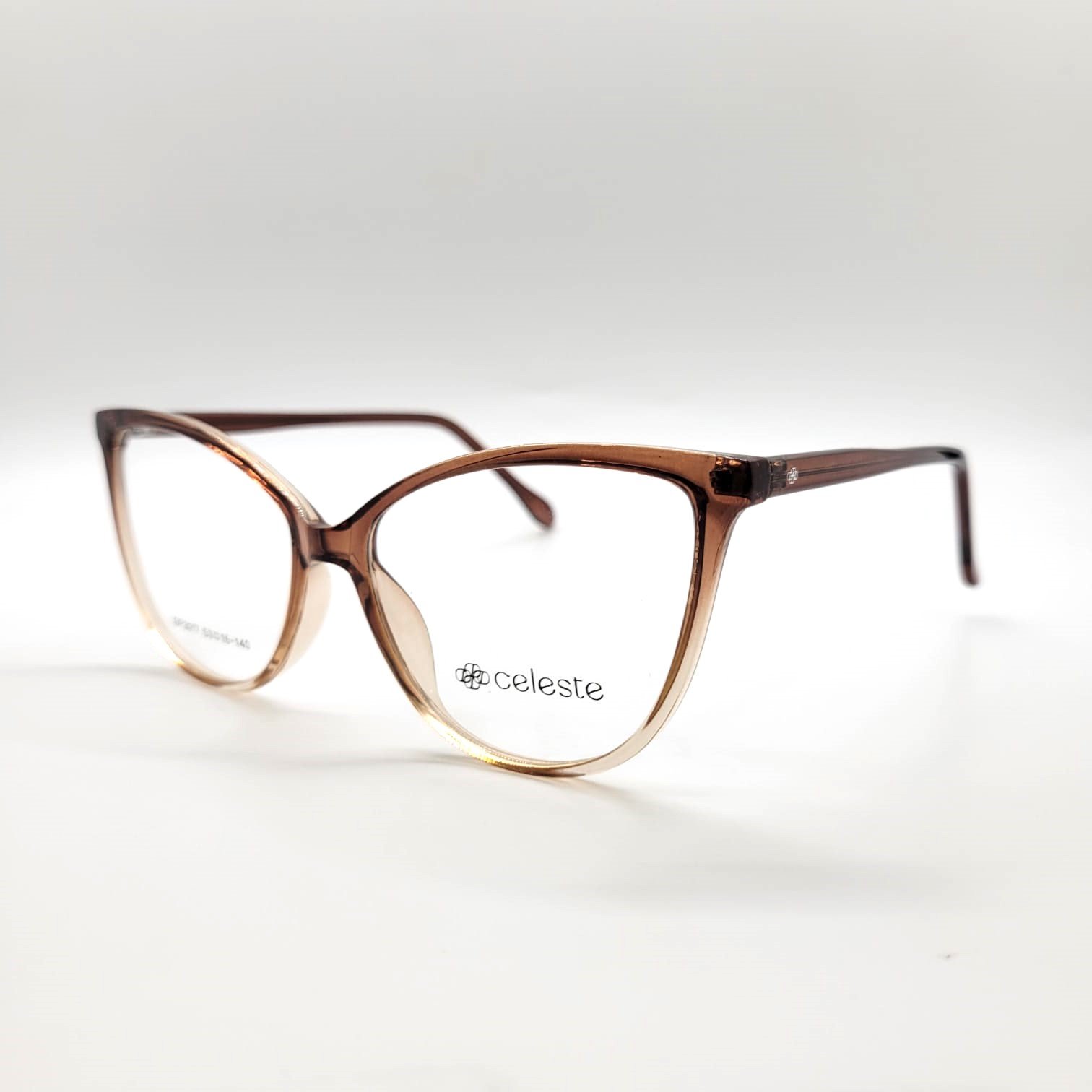 Diseño tipo cat eye en acetmarrón degradado, elegante y moderno.
