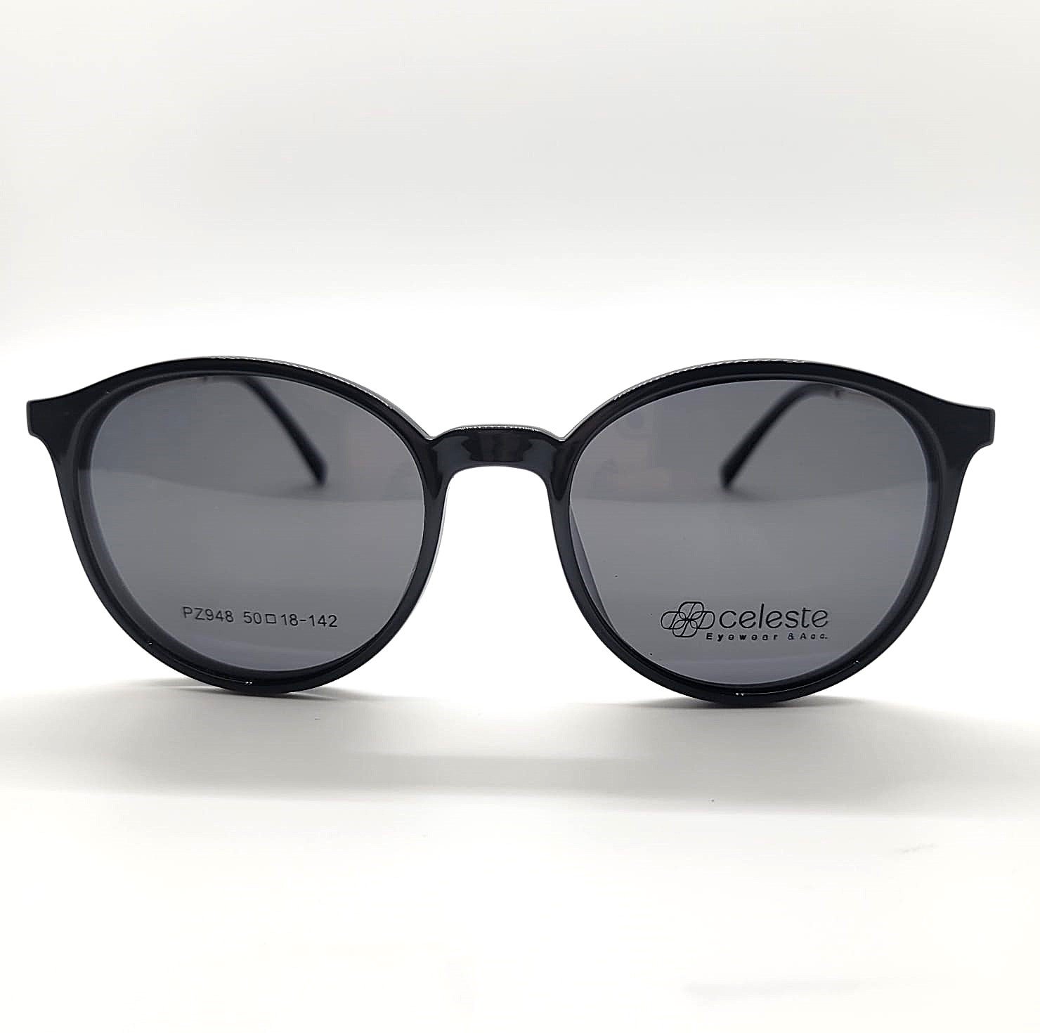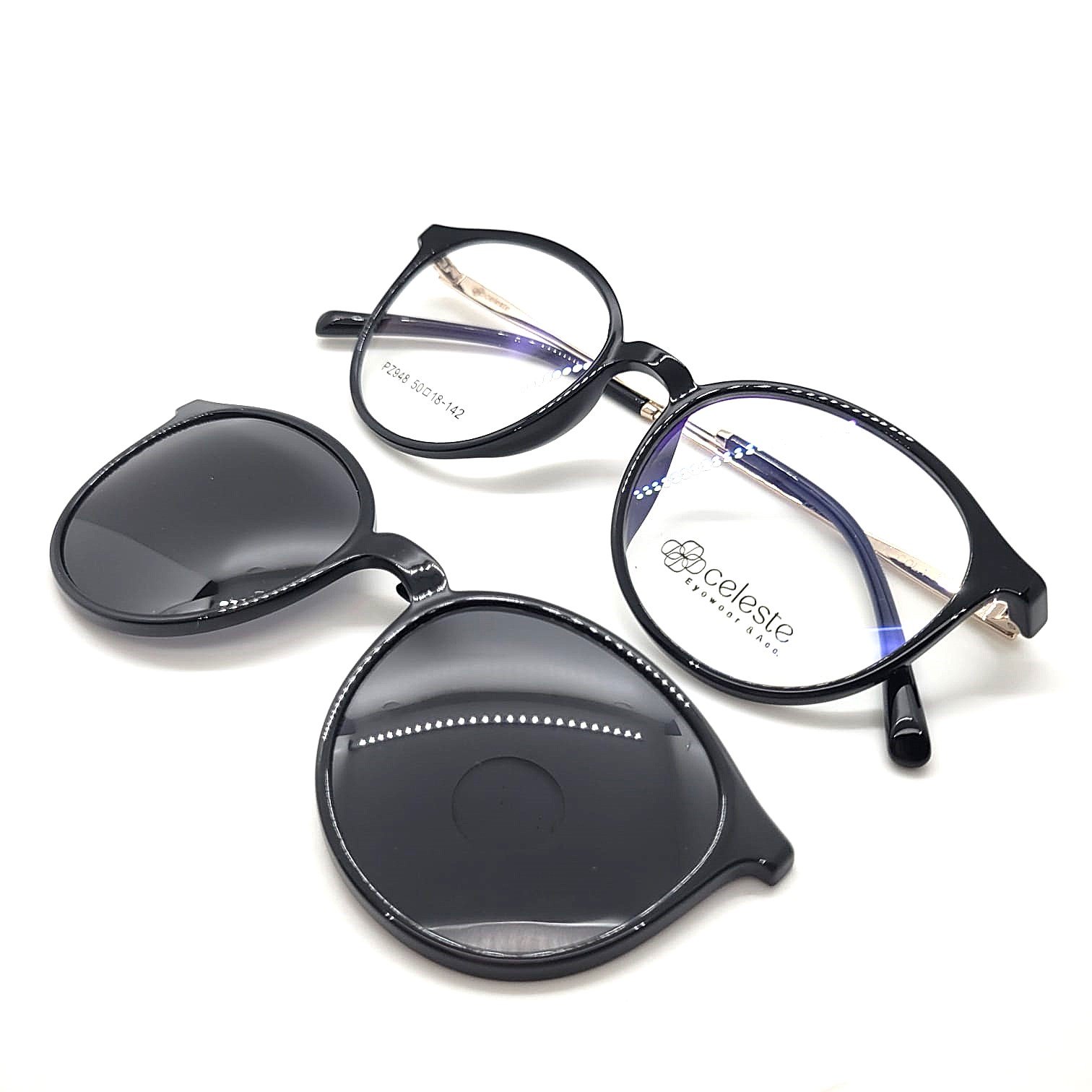 Clip-On en color negro brillante.Estilo redondo clásico con clip solar magnético incluido.Elegancia y funcionalidad para todo tipo de rostro.