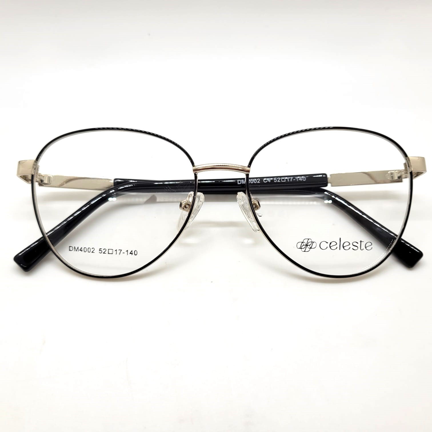Diseño metálico bicolor en negro y plateado, con forma redonda clásica y puente doble. Patillas negras brillantes y plaquetas nasales ajustables para mayor confort. Una opción sobria y sofisticada para uso diario o profesional.