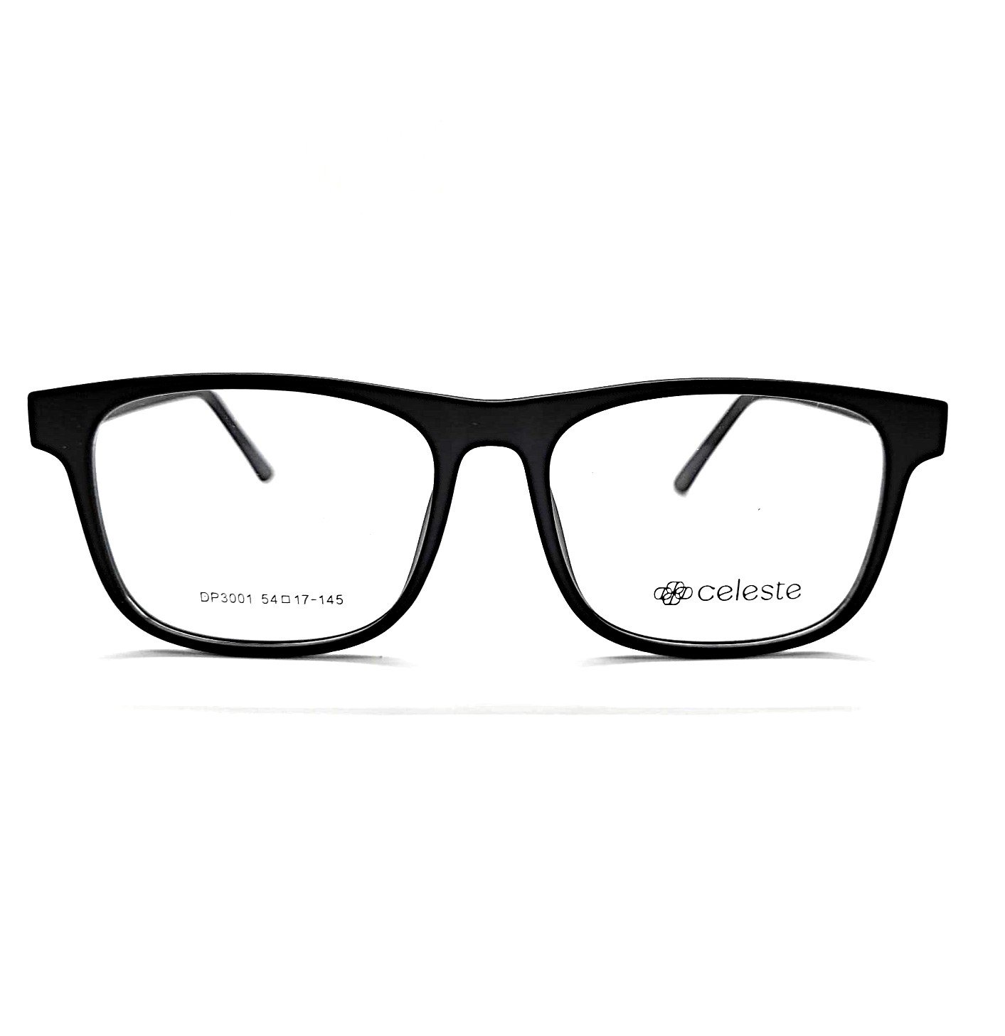 Armazón negro mate con diseño rectangular clásico.