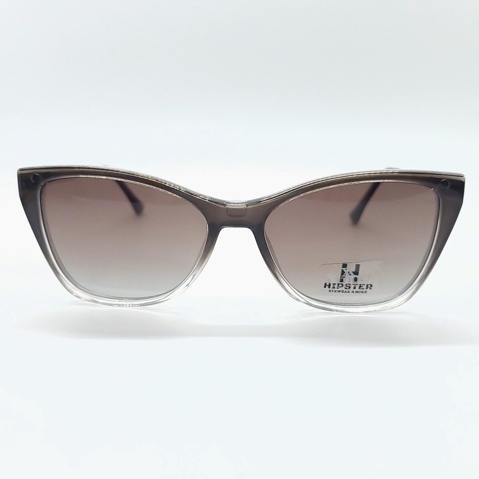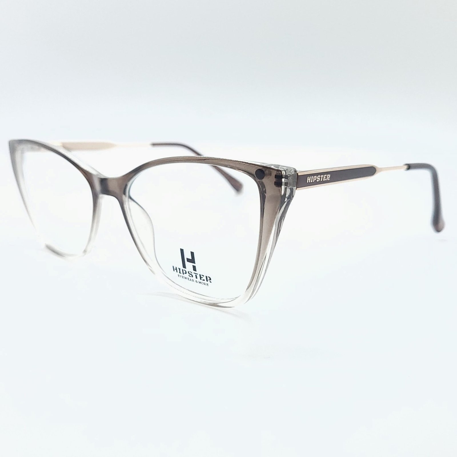 Armazón gris humo translúcido con estética butterfly estilizada.