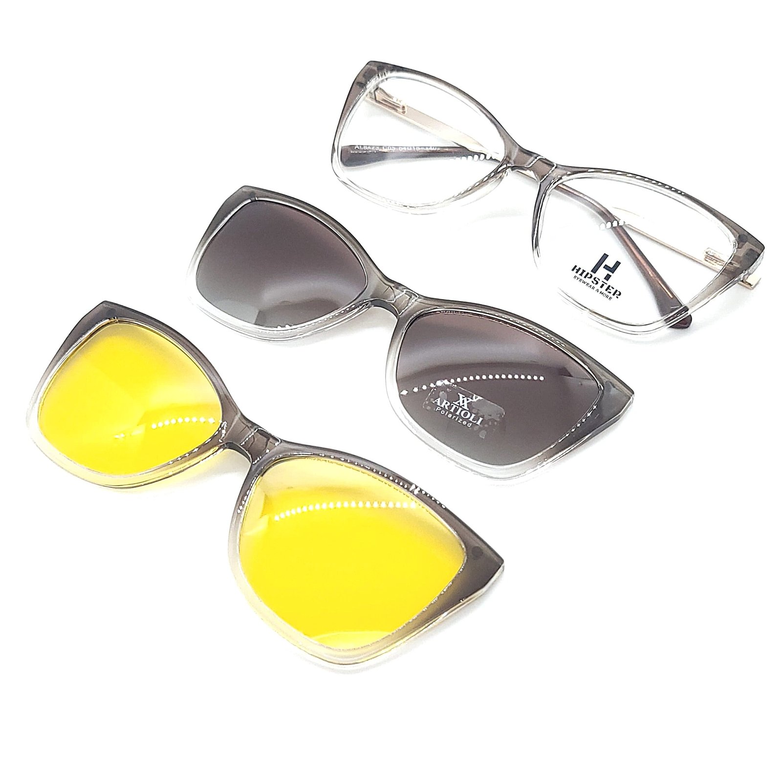 Incluye dos clips magnéticos: solar polarizado UV 400 y filtro amarillo antirreflejo para conducción nocturna.