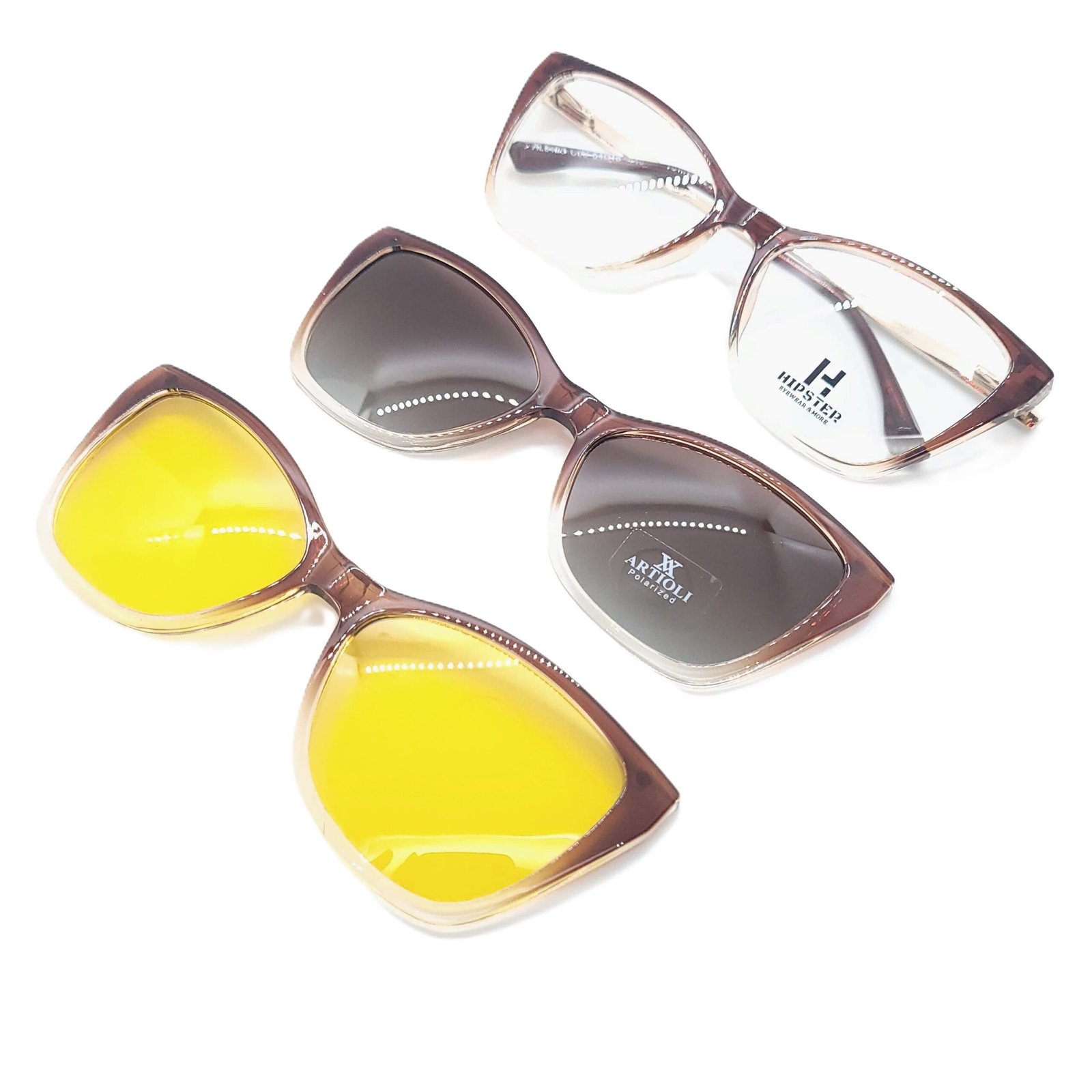 Dos clips magnéticos intercambiables: solar polarizado UV 400 y filtro amarillo antirreflejo para noche.