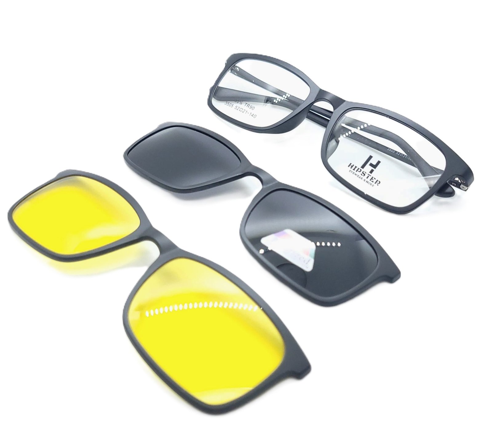Incluye clip solar polarizado UV 400 y clip amarillo antirreflejo para conducción nocturna.