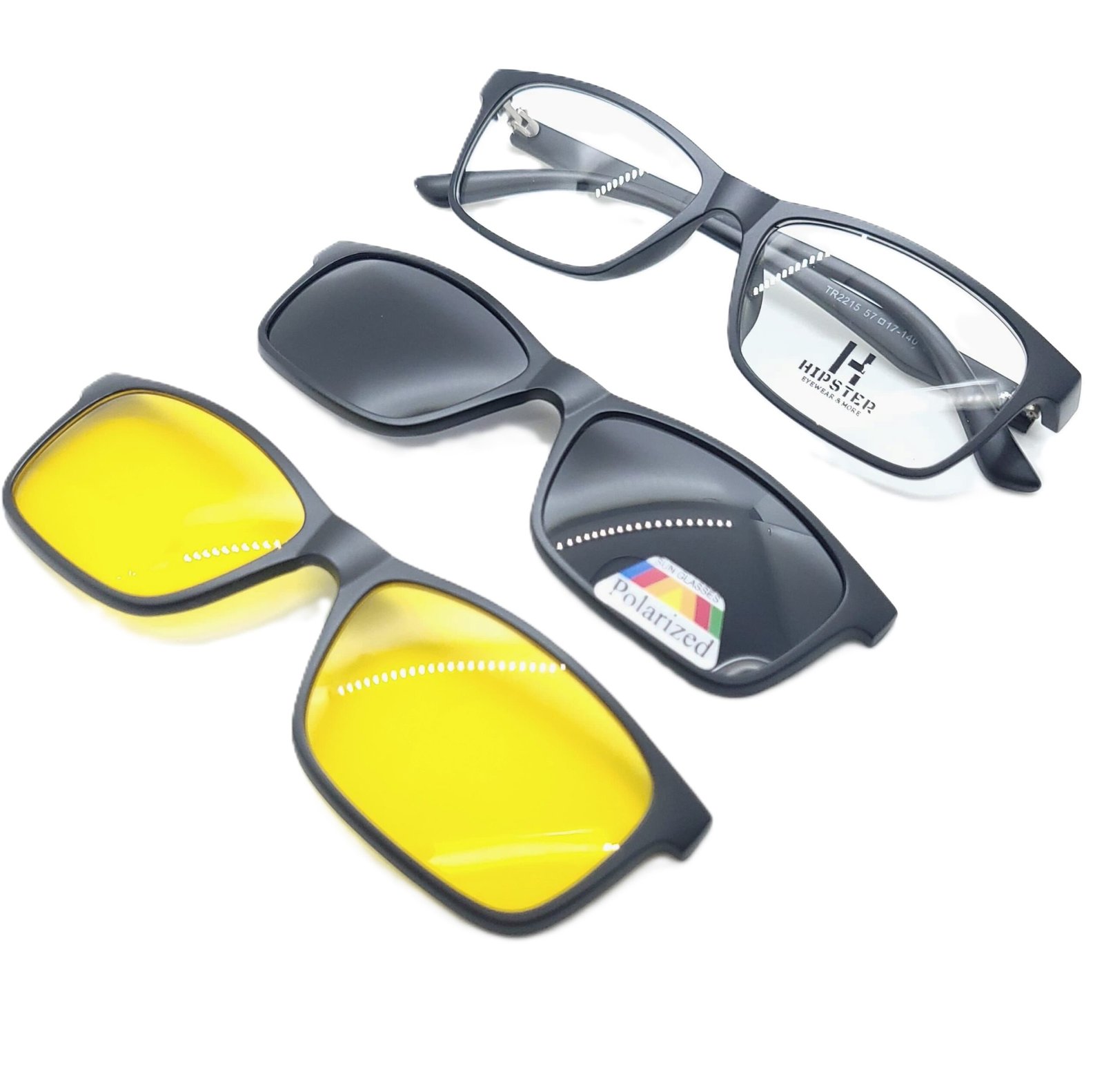 Incluye clip solar polarizado UV 400 y clip amarillo antirreflejo para conducción nocturna.