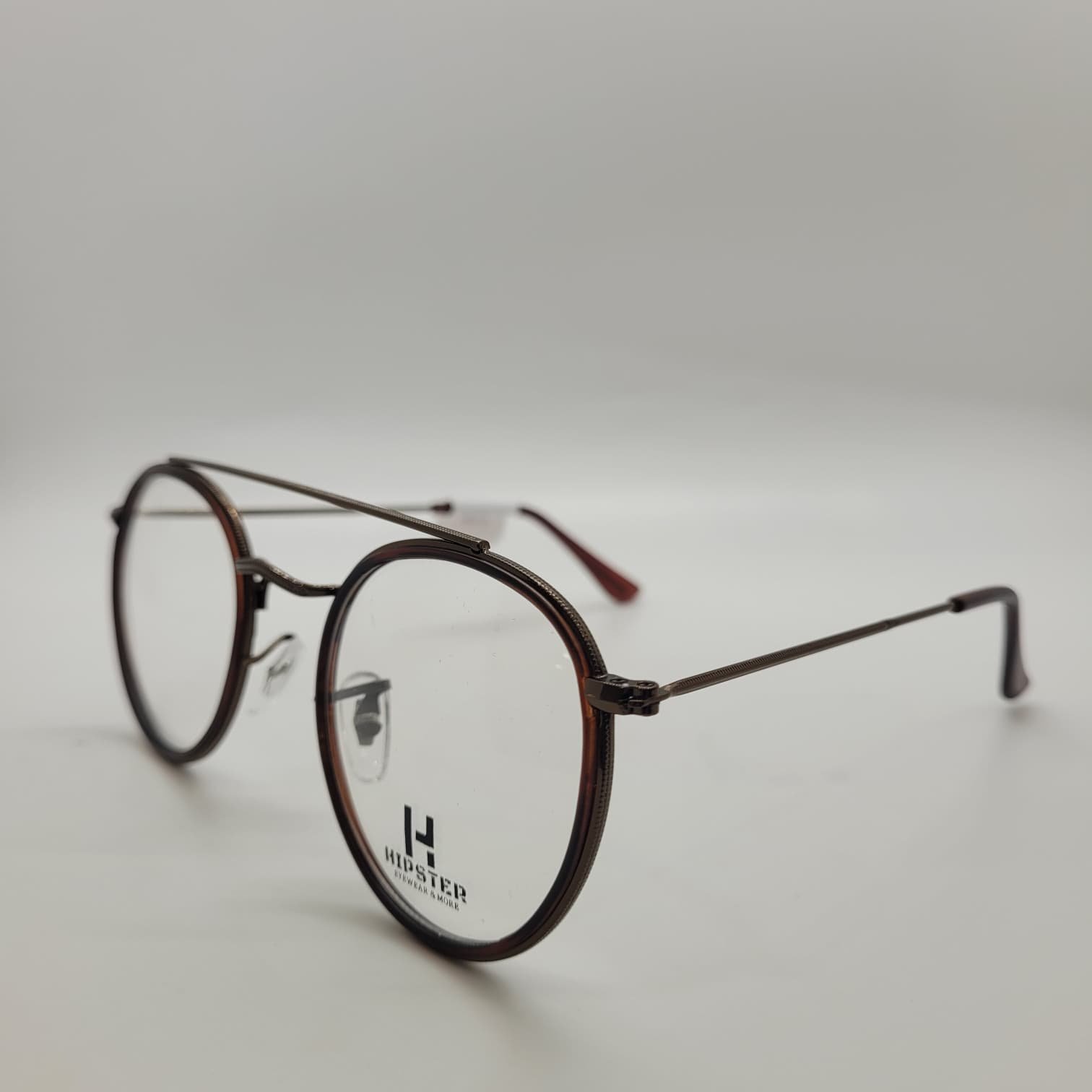 Armazón metálico liviano en tono marrón oscuro con forma redonda clásica. Puente doble que aporta carácter y un estilo distintivo. Ideal para quienes buscan elegancia con un toque retro.