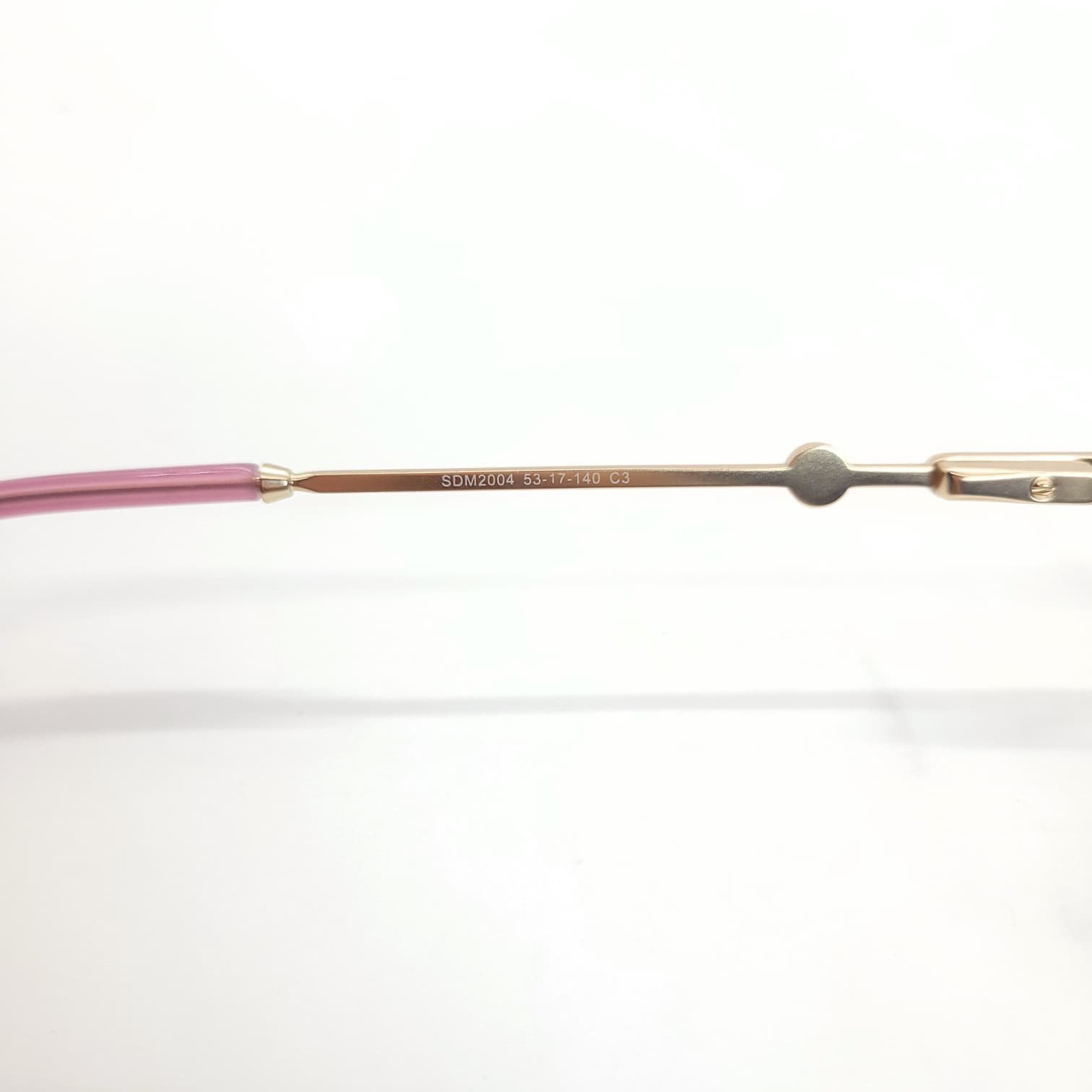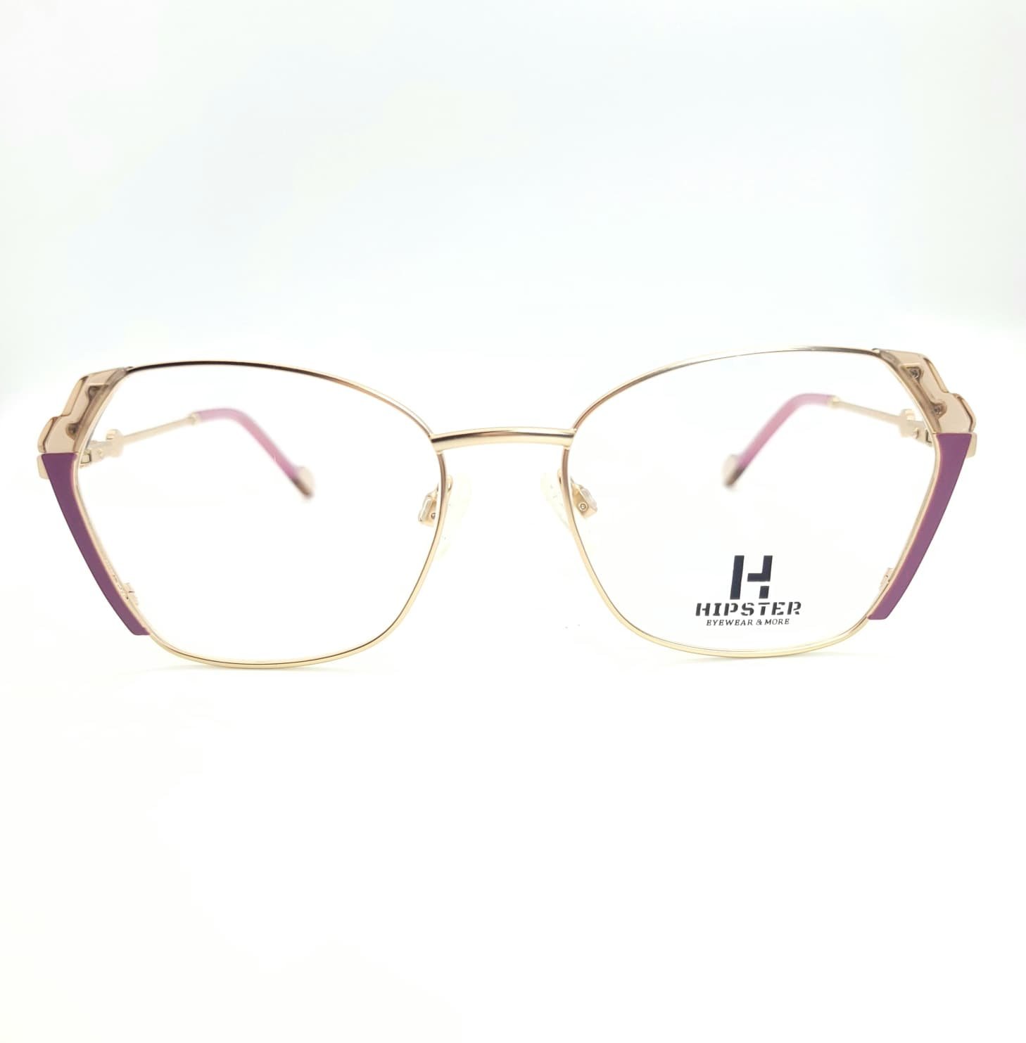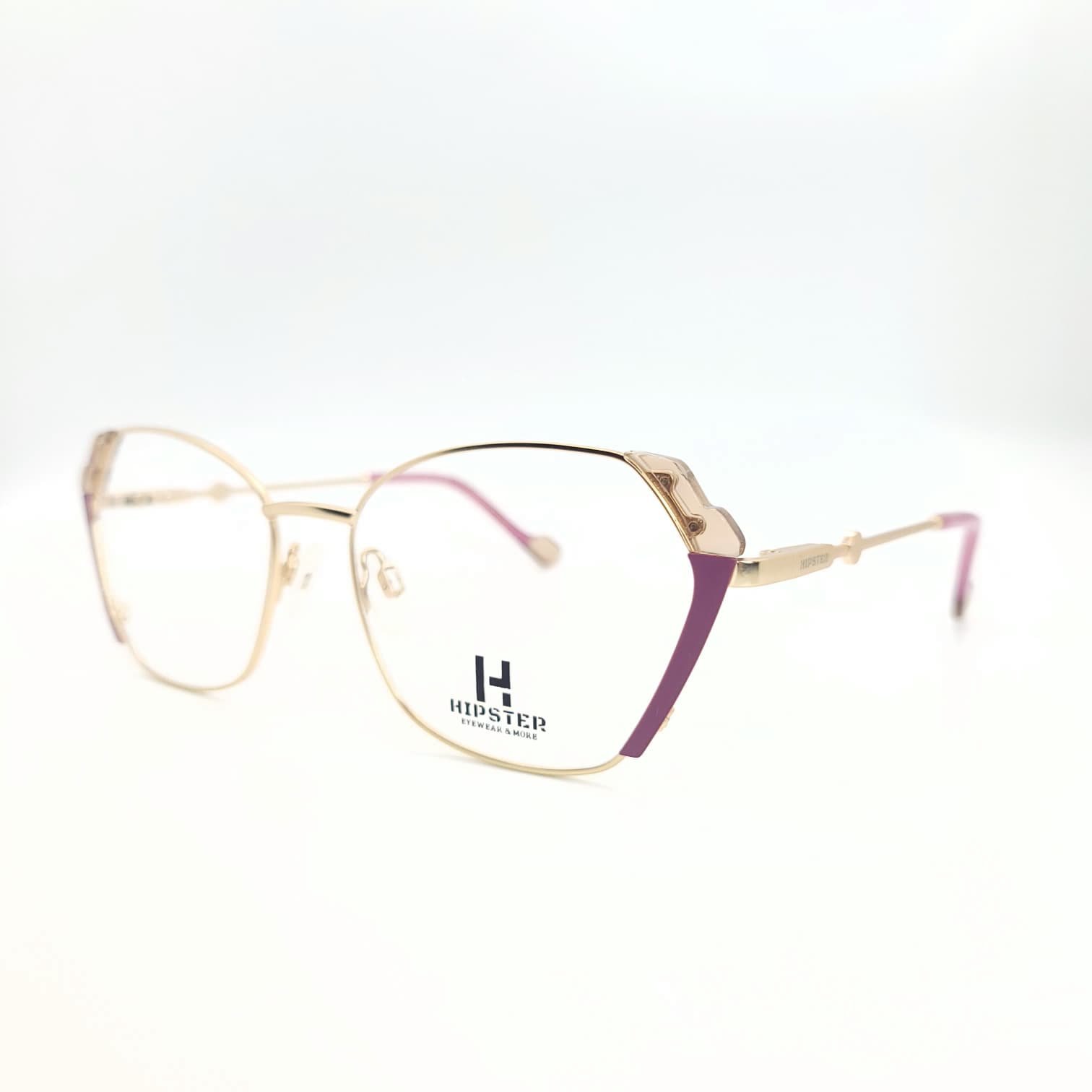 Montura metálica en tono dorado con diseño geométrico moderno.