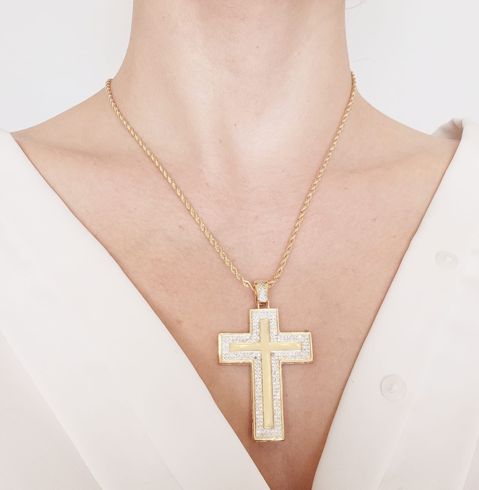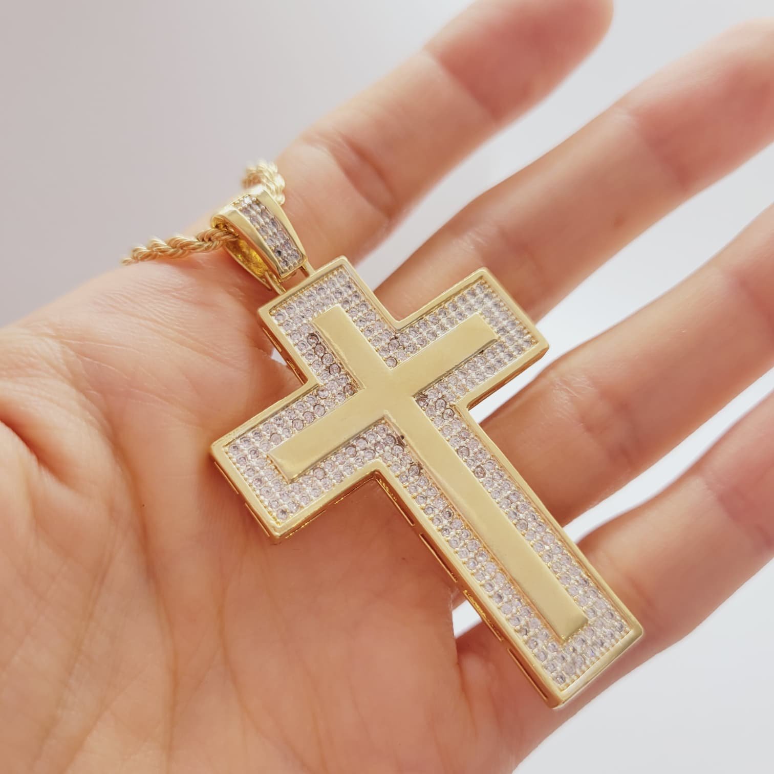 Cadena Cuerda con Cruz XL en Circonias 45cm