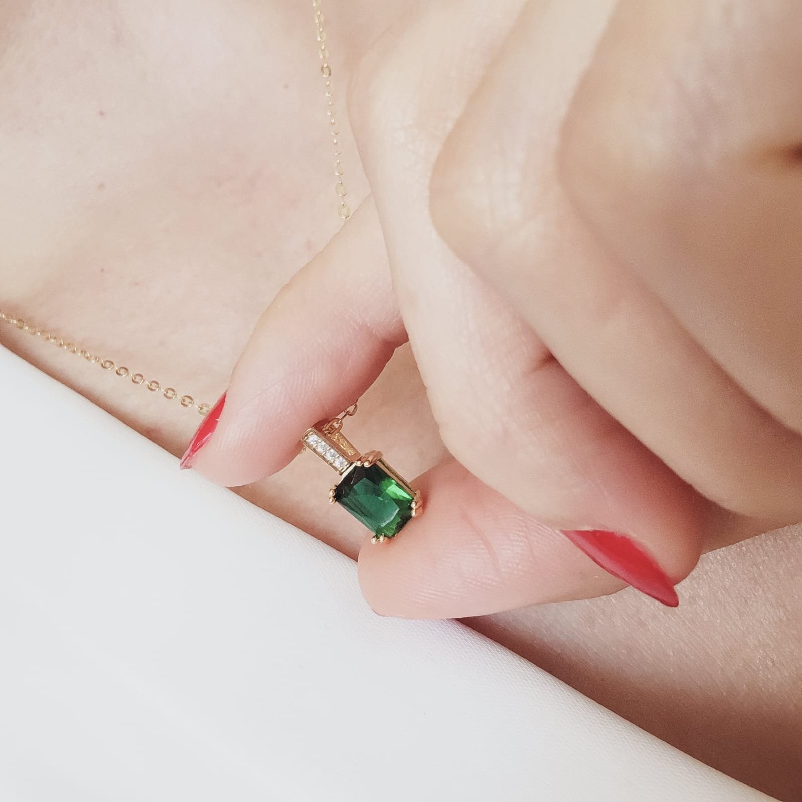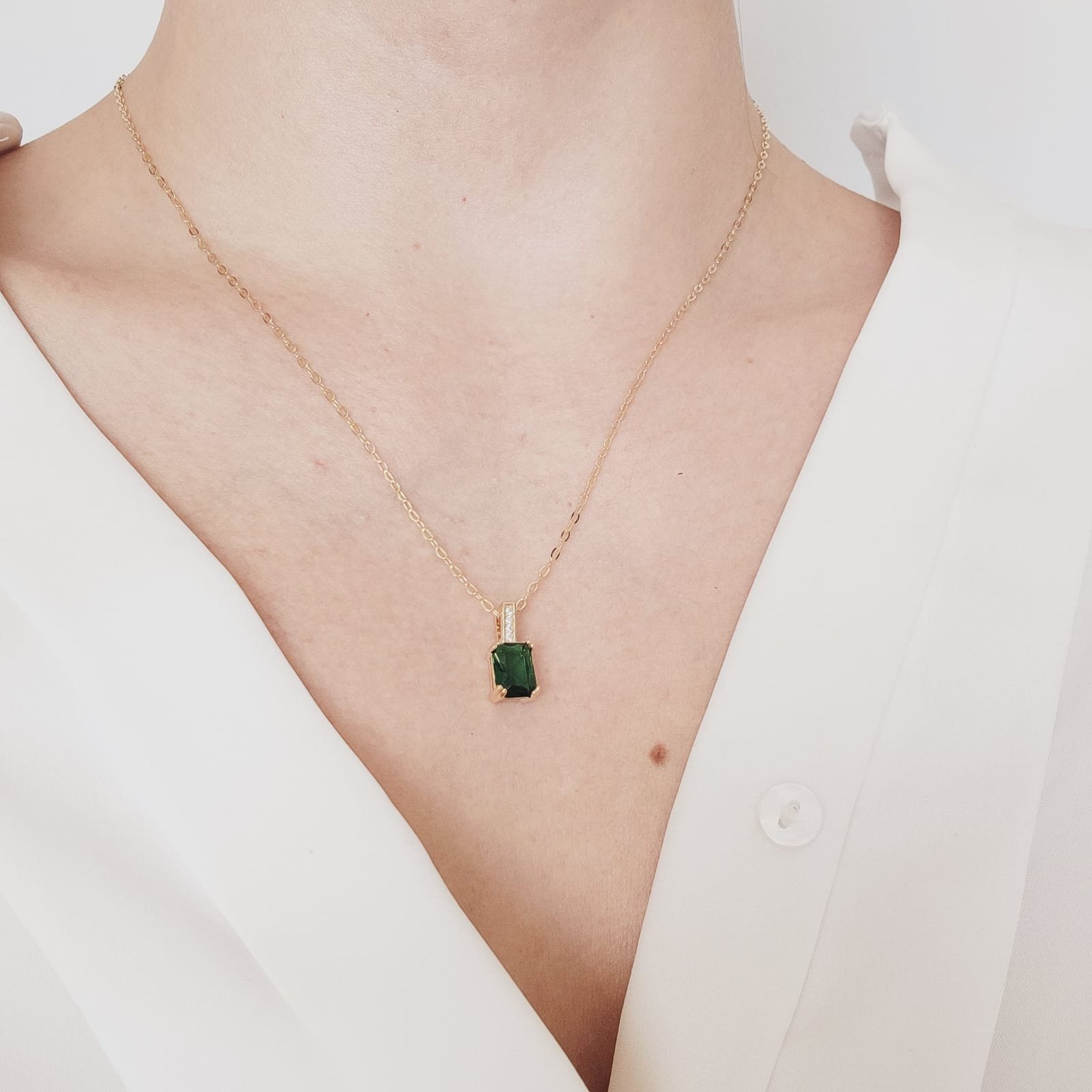 Cadena Forcet Dorado con Dije Corte Esmeralda 45cm