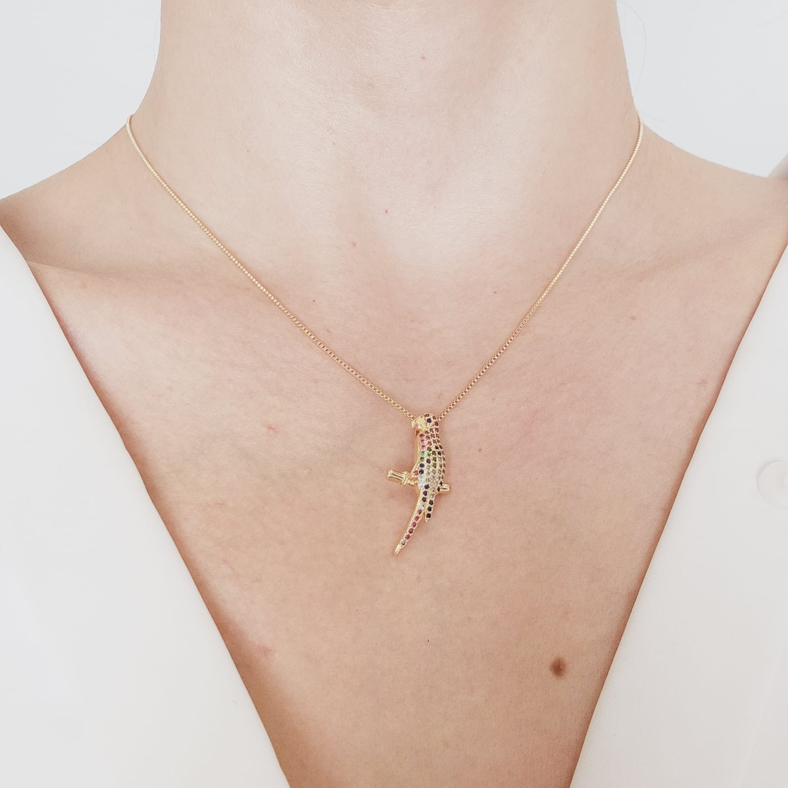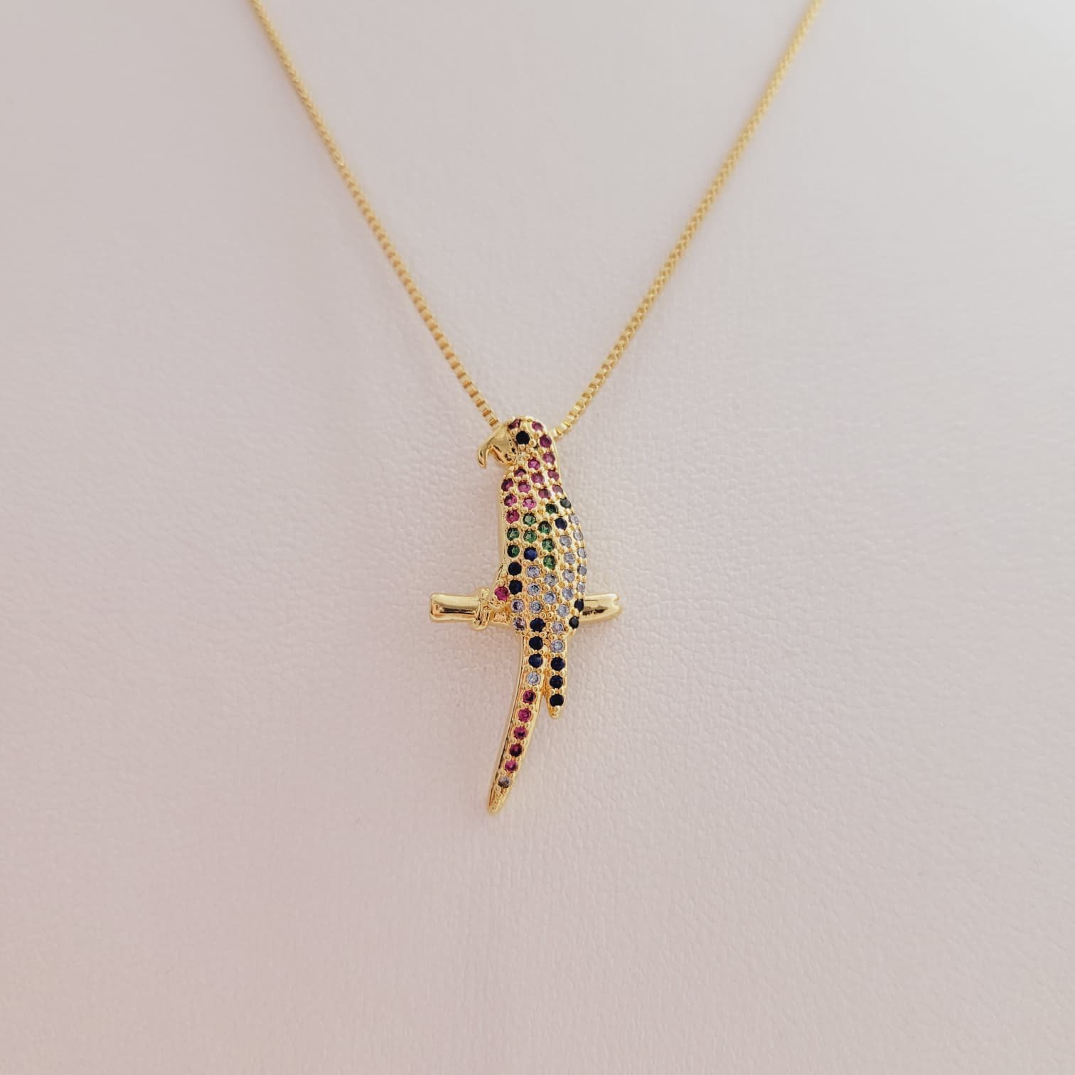 Cadena Forcet Fina con Dije de Loro Multicolor 40cm