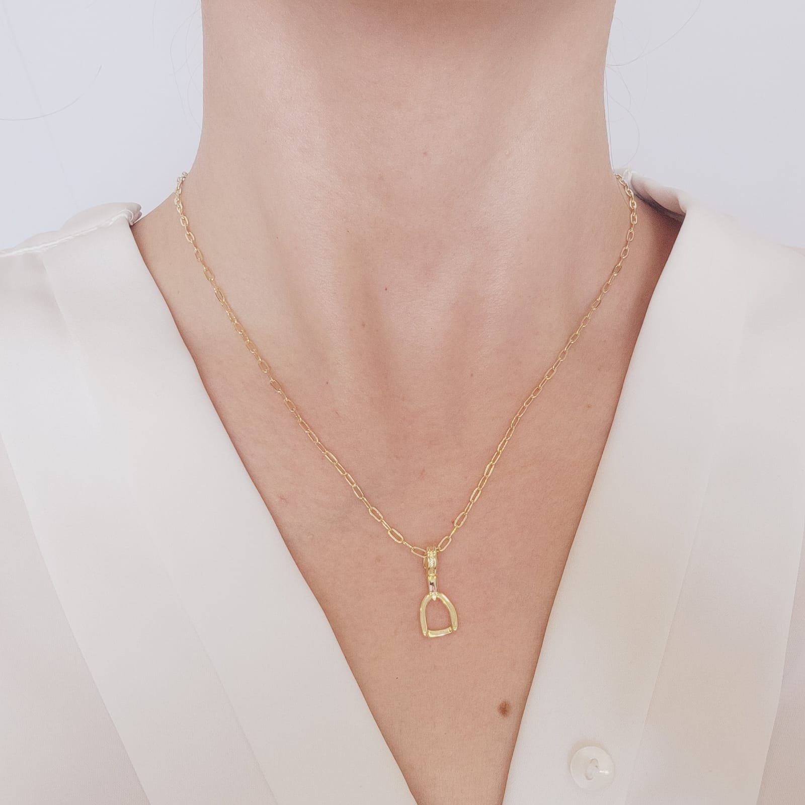 Cadena Paperclip Con Dije Estribo 47cm