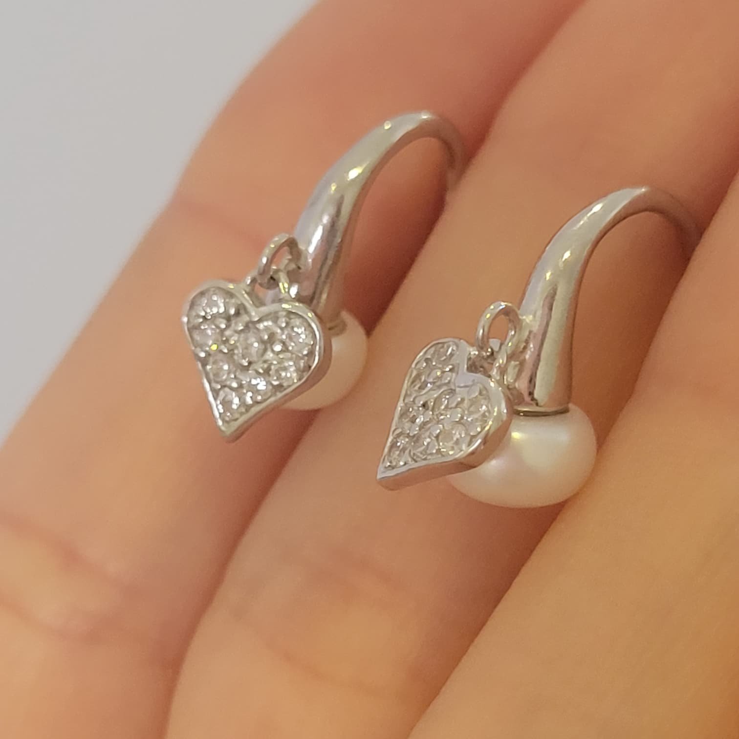 CARAVANA PERLA BIWA Y CORAZON PLATA Y RODIO J03R002