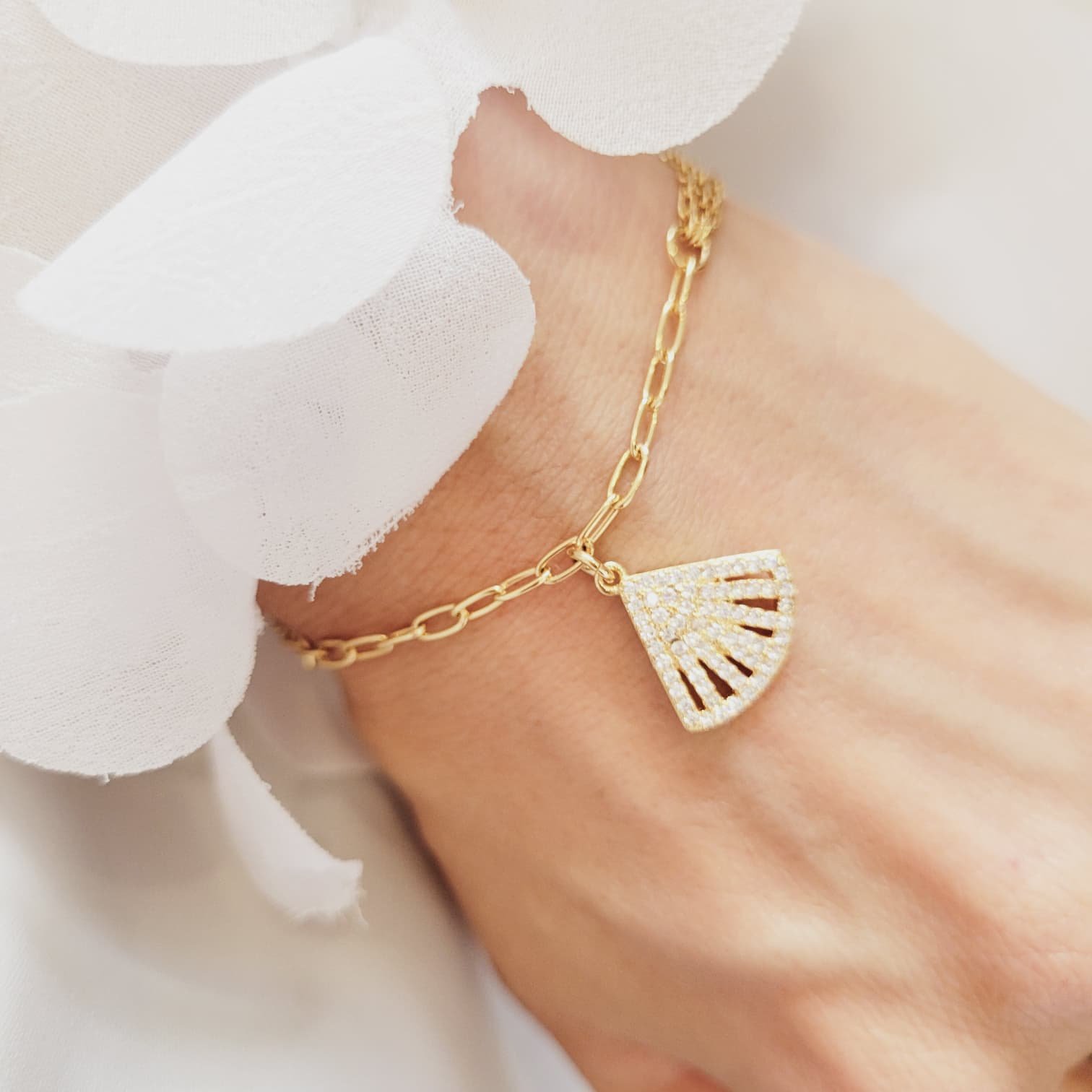 Pulsera Cadena Fina con Colgante Abanico Pavé 17cm